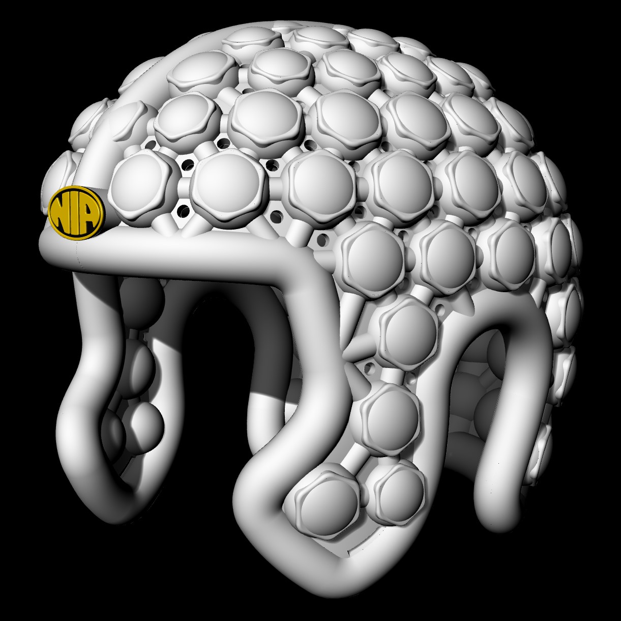 The patented Nodal Impact Attenuation (NIA) system is not merely a new helmet – it is an innovative impact structure with many real-world applications. For example, it could easily be applied to other forms of sports protective gear, such as body armour. NIA is a network of spheres, distributed and strategically connected via a triangular lattice. The spheres are located at every node of the lattice. Each sphere has a hex-shaped ridge to accommodate the potential development of a hard-shell version in the future. The entire structure is moulded from one-part flexible EVA foam. This system is what makes the NIA helmet over 90% more effective at reducing head acceleration during impact when compared to the four current leading brands of sports headgear. This in turn significantly reduces the risk of concussion. For detail, see: niahelmets.com